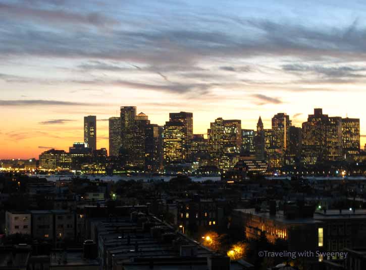 In these photos, I tried to capture some of that contrast. The photo above of the Boston skyline at sunset was taken from across the harbor over the rooftops of East Boston.