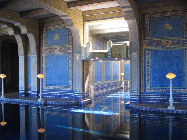 Wow, what a juxtaposition between the two buildings! Living in California for the last number of years I’ve had a lot of opportunity to hear random things about Hearst, but I’ve never had the chance to see this. Someday hopefully I will, though! Like everyone else, I’d take a dip in that pool.