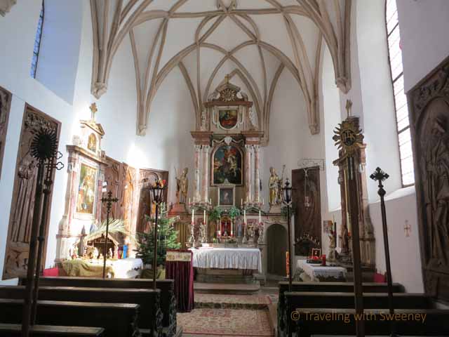 Built around 1500 by the Archbishop Leonhard von Keutschach, the Gothic chapel was very peaceful compared to the bustle in the courtyard. It felt very cozy and there were numerous features that made it distinct, such as the bas-relief carvings of the apostles on the walls, the altar and the domed ceiling above the altar.