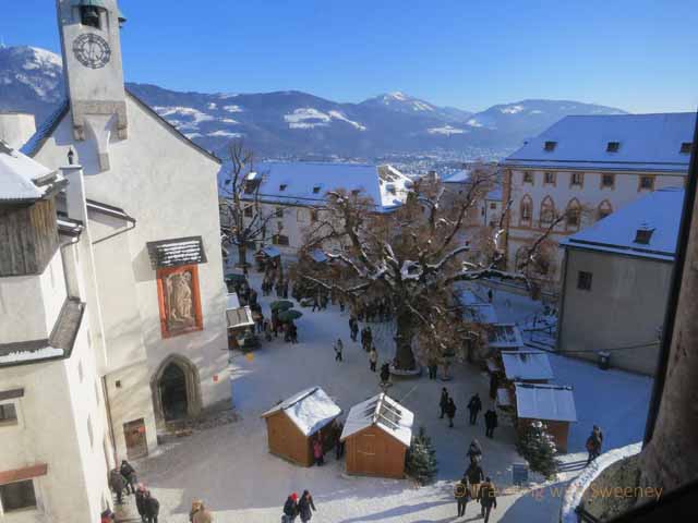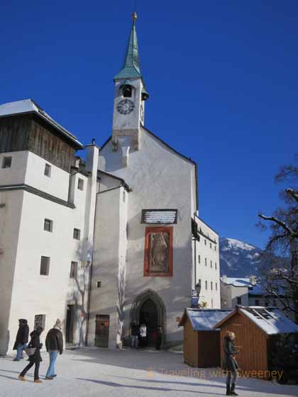 As we turned the corner we entered the main courtyard. Since it was early December, one of Salzburg’s Christmas markets was set up here. Though it was small, it had some unique booths and the setting was great. In the summer months, the courtyard also hosts theatrical performances and a medieval festival. Also visible is St. George’s Chapel, with an entrance on the courtyard.