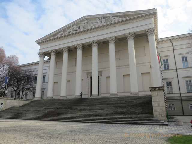The museum was the center of many events after that night and is an important symbol of democracy for Hungarians. On Friday, among other events, speeches will be made from the top of the museum’s steps. Almost all businesses are closed and the Parliament Building and key museums are open without the usual fees. An activity I would have liked to have seen was a procession of Hussars (light cavalry adopted by other militaries but originating with Hungarians of the 17th century) from the Hungarian National Museum to the Royal Palace high on the hill on the Buda side of the Danube. But, by chance, we did get to see a group of Hungarian school children on a field trip marching down the street near the National Museum in their Hussar hats.