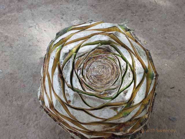 From the large central stem of the plant is harvest the core called a piña (pineapple) below. Harvesting involves a careful, skilled manual process of extracting the piñas from the rest of the stem and the removing the leaves.