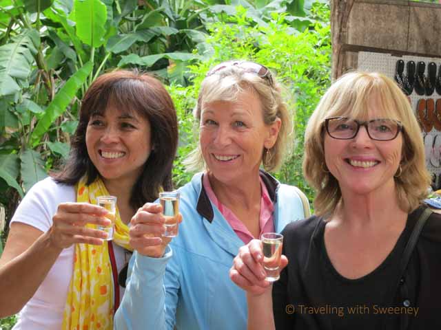 By Mr. TWS — It’s really a rare thing to see since Sweeney’s preferred beverage is wine. However, when in Rome… The occasion was a tour and sampling at the Los Osuna distillery in the Mexican state of Sinaloa near Mazatlan. I like the amusement on the face of the onlooker on the left.